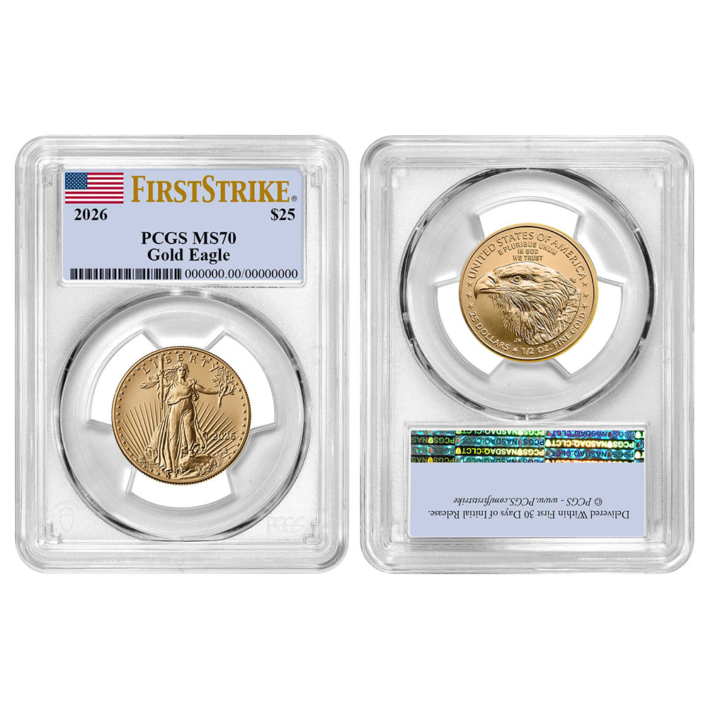 2026 $25 American Gold Eagle 1/2 oz PCGS MS70 FS Flag Label
