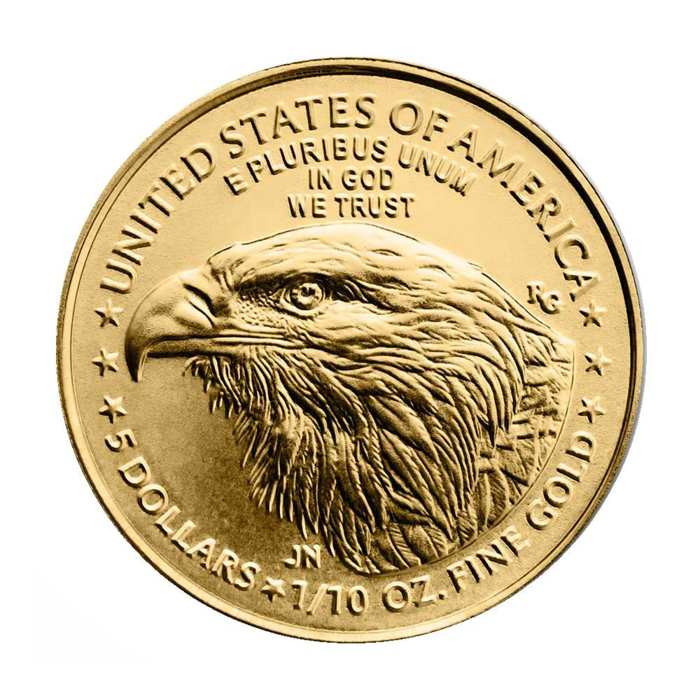In 2021 United States Mint Artistic Infusion Program designer Jennie Norris created the redesign for the reverse of these coins. This new design is referred to as “Eagle Portrait” and portrays an eagle bust. The American Gold Eagle is offered in 4 sizes: 1 oz, 1/2 oz, 1/4 oz, and 1/10 oz, making it popular amongst collectors seeking to add Gold Eagles to their collections.