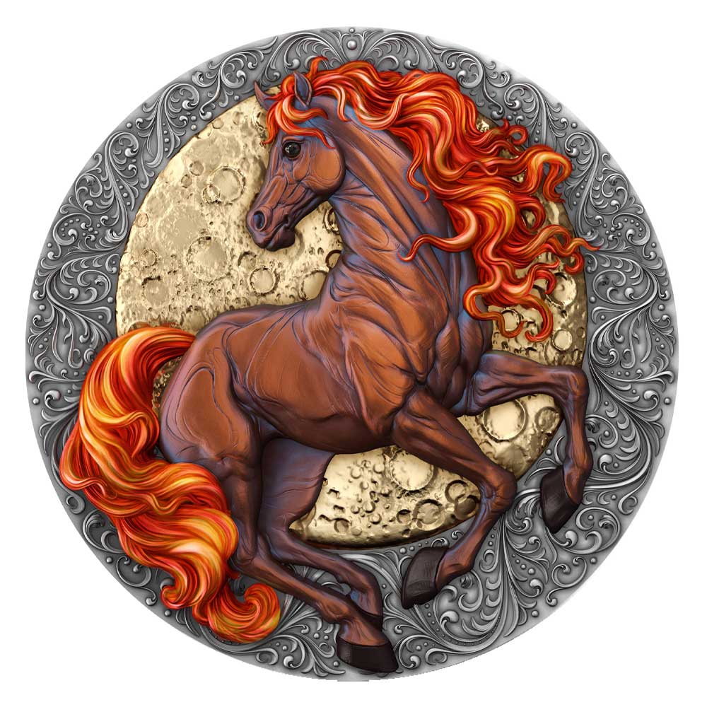 Product History: The 2026 $5 Fire Horse 2 oz High Relief Antiqued Silver Coin by T&S Coin Mintage of 426 celebrates the Chinese zodiac sign of the Horse for 2026. This stunning piece is struck in 2 ounces of .999 fine silver and commemorates the Horse individuals’ unique qualities and attributes. With a limited mintage of only 426 coins, this release is highly sought after by collectors and is a must-have for any coin enthusiast.