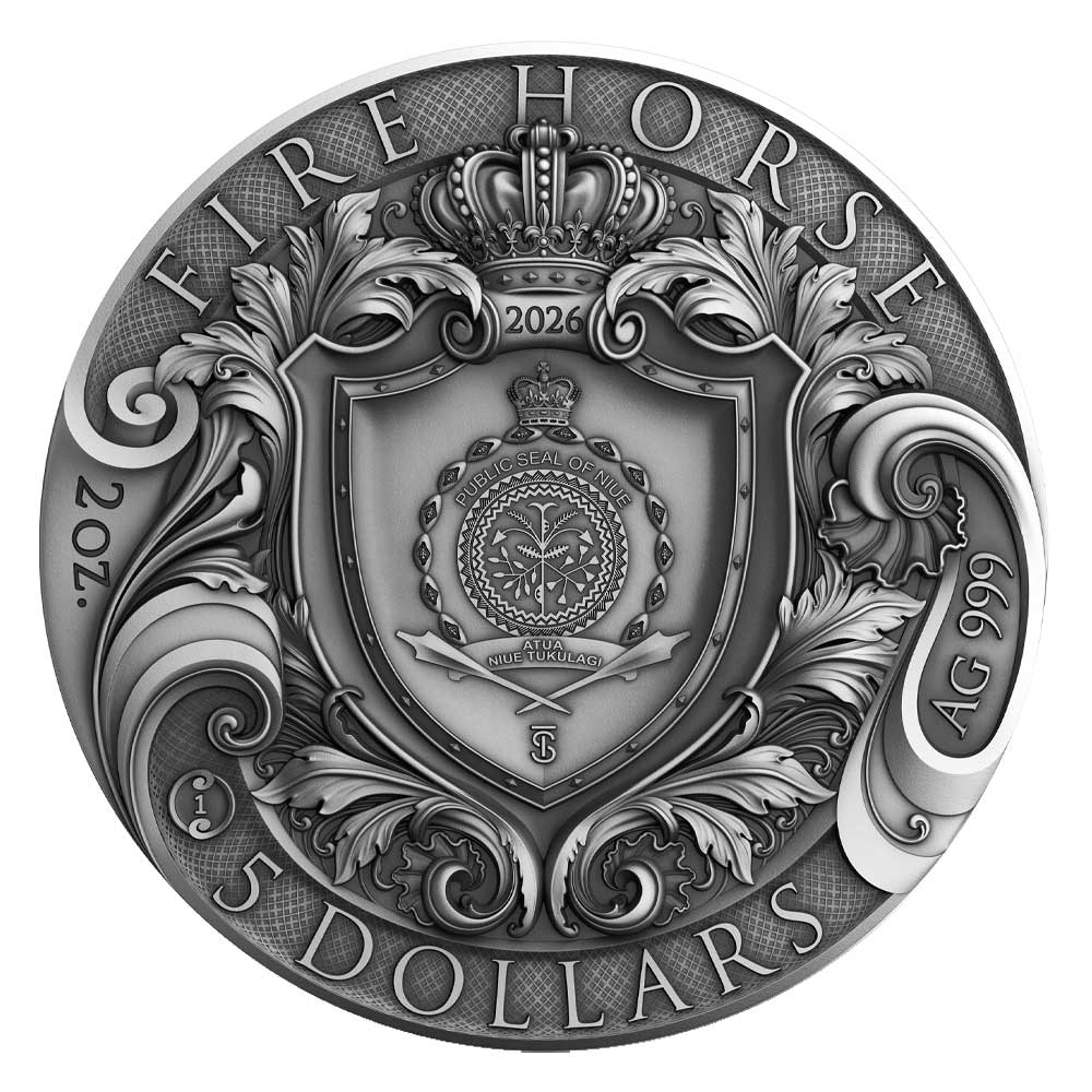 Description: Add an impressive and unique piece to your collection with the 2026 $5 Fire Horse 2 oz High Relief Antiqued Silver Coin by T&S Coin Mintage of 426. This stunning coin showcases exquisite craftsmanship and high-relief detail, making it a standout addition to any collection. With a limited mintage and a design that pays homage to the Horse zodiac sign, this coin is sure to be highly valued among numismatists. Don’t miss the opportunity to own this exceptional release, secure yours today!
