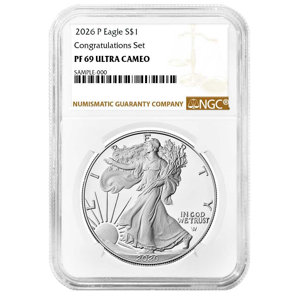 2026-P Proof $1 American Silver Eagle Congratulations Set NGC PF69UC Brown Label