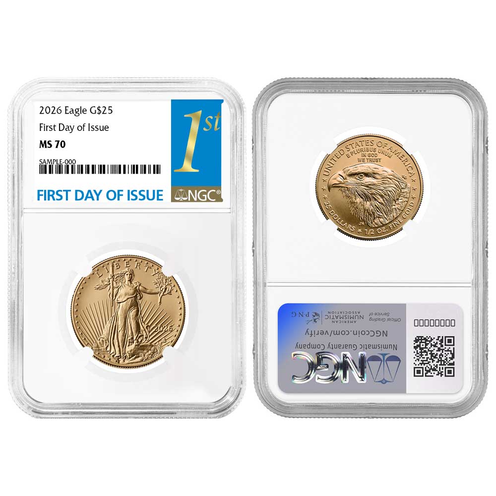 2026 $25 American Gold Eagle 1/2 oz NGC MS70 FDI First Label