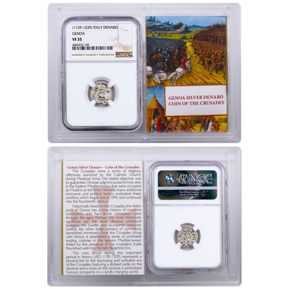 Description: Own a piece of history with the 1139-1339 Italy, Republic of Genoa Silver Denaro NGC VF35 (Story Vault). This coin encapsulates the unique historical significance of the Republic of Genoa during Europe’s economic boom, making it a captivating addition to any collection. With its precious metal content and NGC grading, it stands as a tangible link to a pivotal era, and is a testament to the enduring allure of ancient coinage.