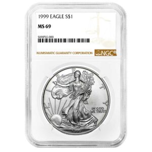 1999 $1 American Silver Eagle NGC MS69 Brown Label