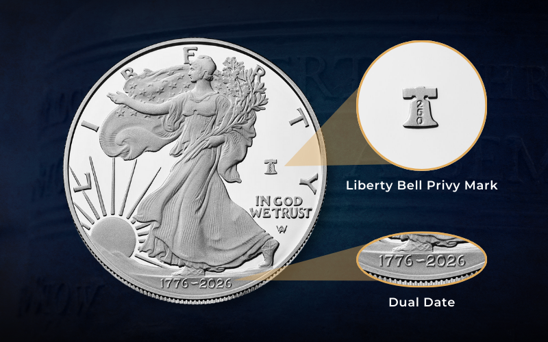 All U.S. Mint 250th anniversary coins share distinctive identifying characteristics. The dual date “1776 ~ 2026” appears prominently on both circulating and collectible versions, immediately signaling commemorative status. This dating convention creates visual consistency across the entire program range.
